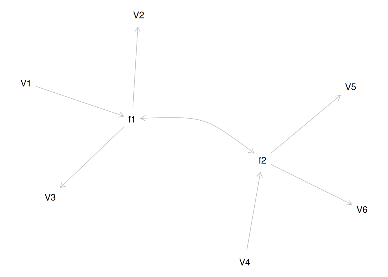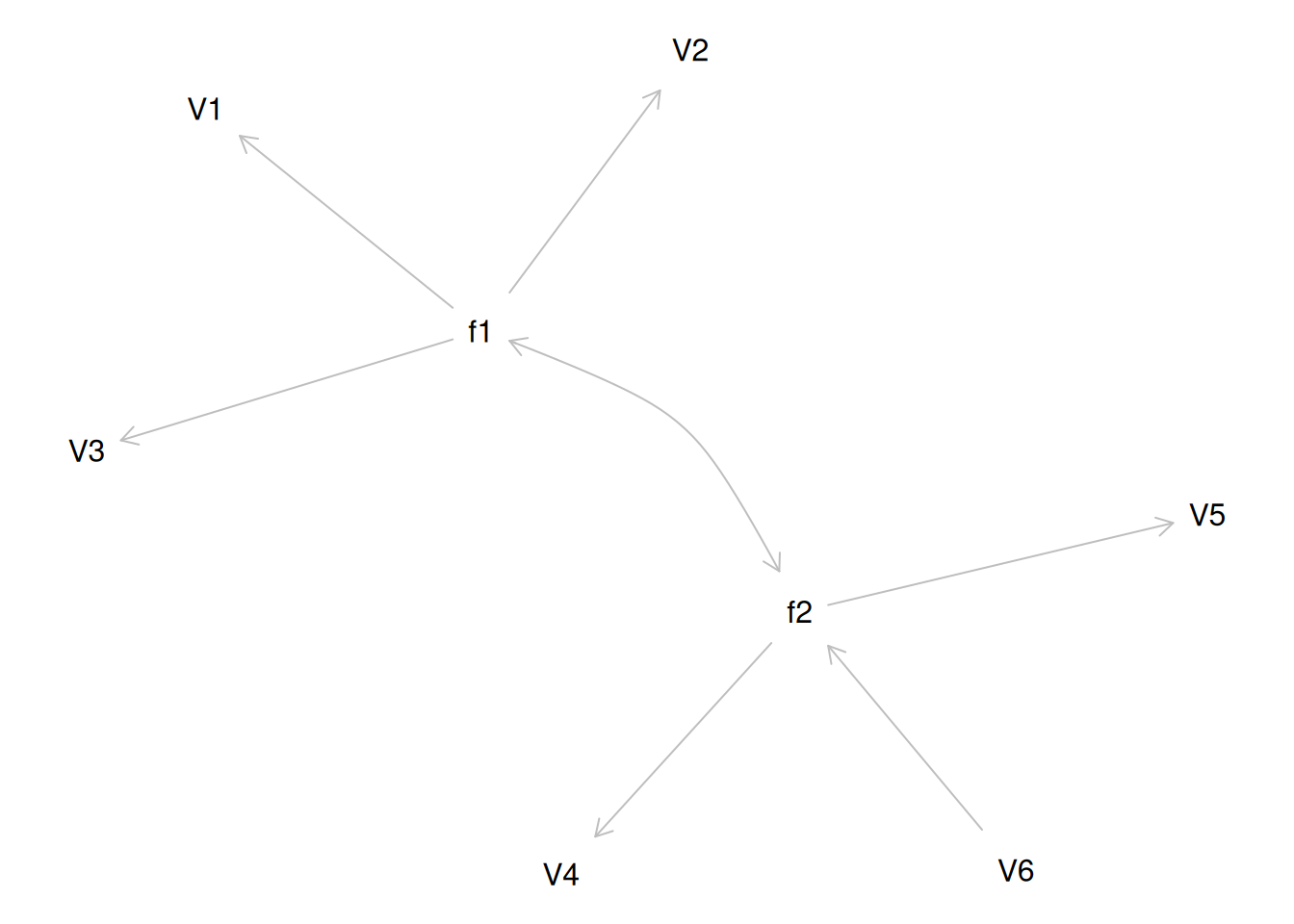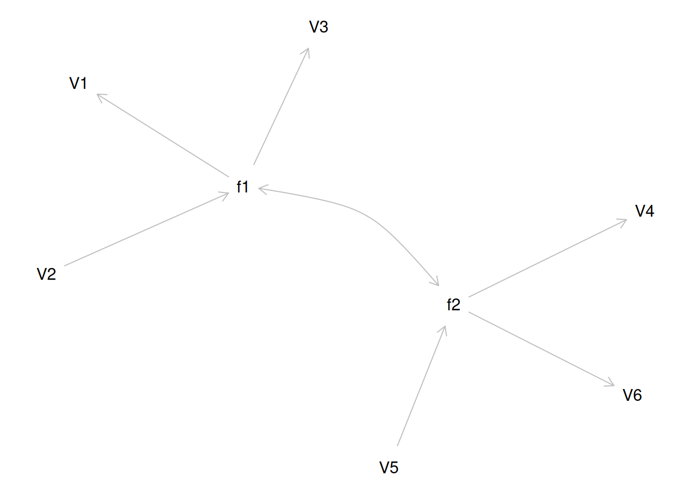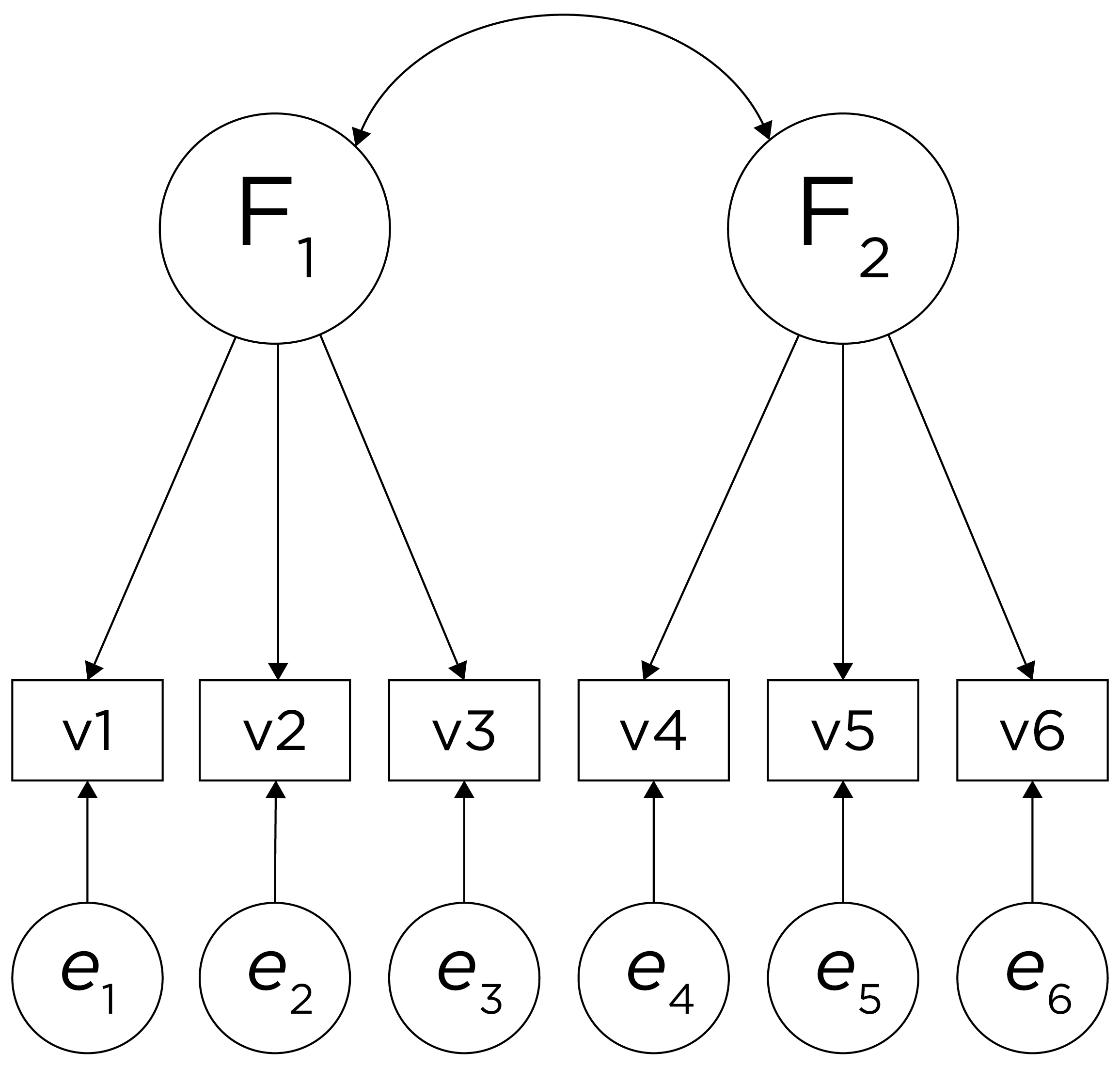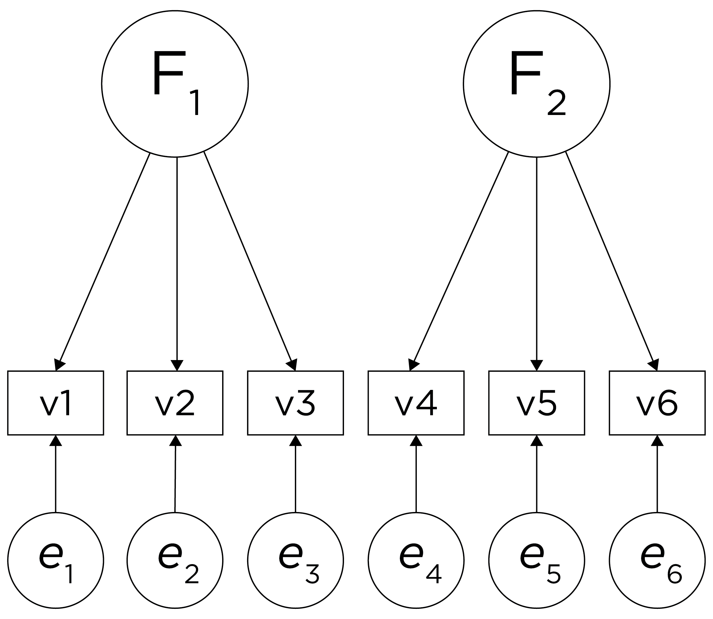 An example of a measurement model that follows simple structure is depicted in Figure 14.16. Each variable loads onto one and only one factor, which makes it easy to interpret the meaning of each factor, because a given factor represents the common variance among the items that load onto it.