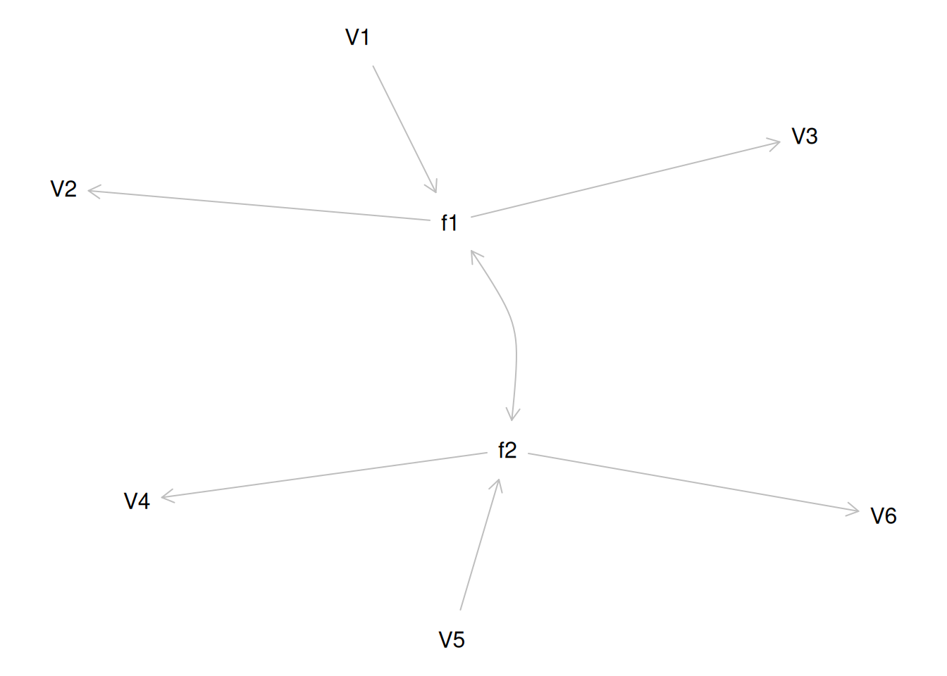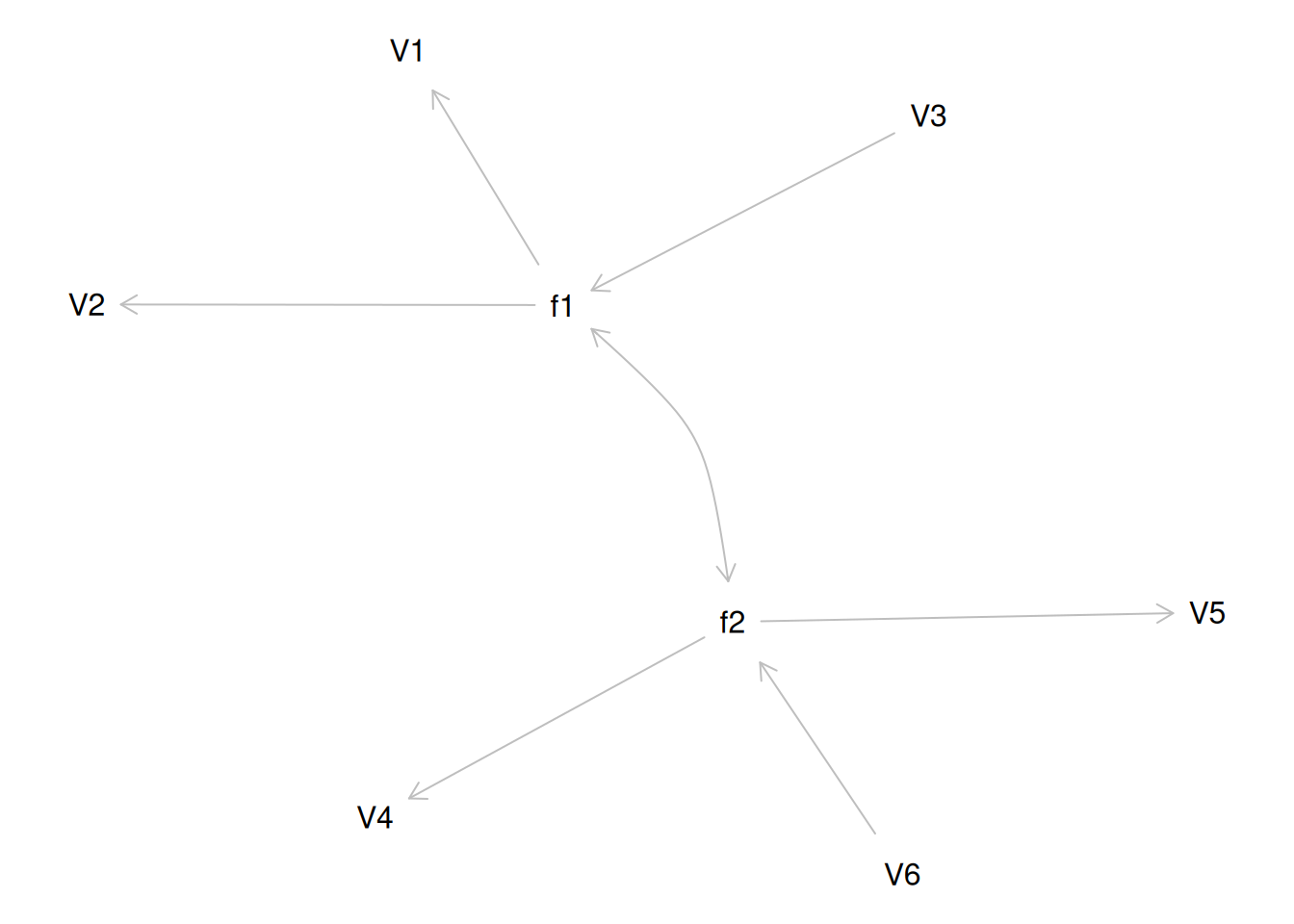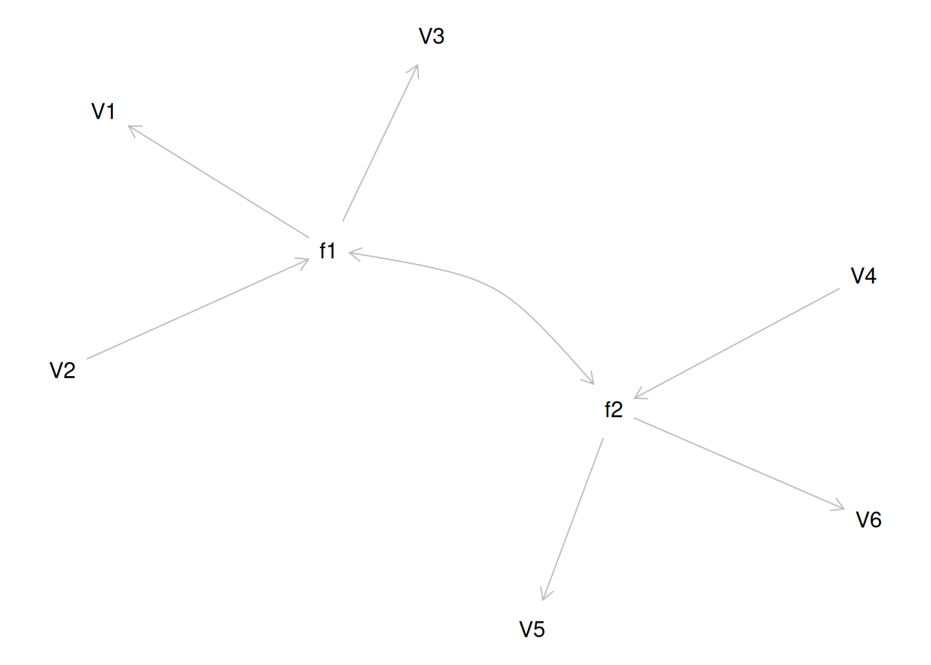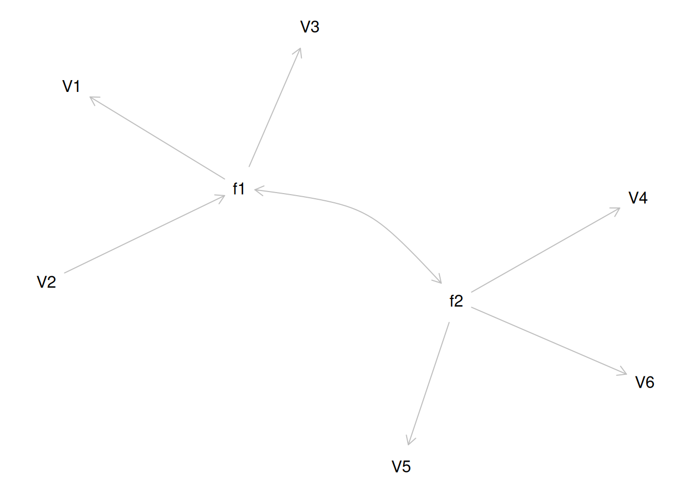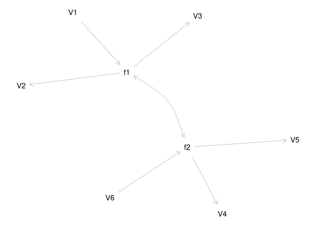 An example of a measurement model that follows simple structure is depicted in Figure 14.16. Each variable loads onto one and only one factor, which makes it easy to interpret the meaning of each factor, because a given factor represents the common variance among the items that load onto it.
