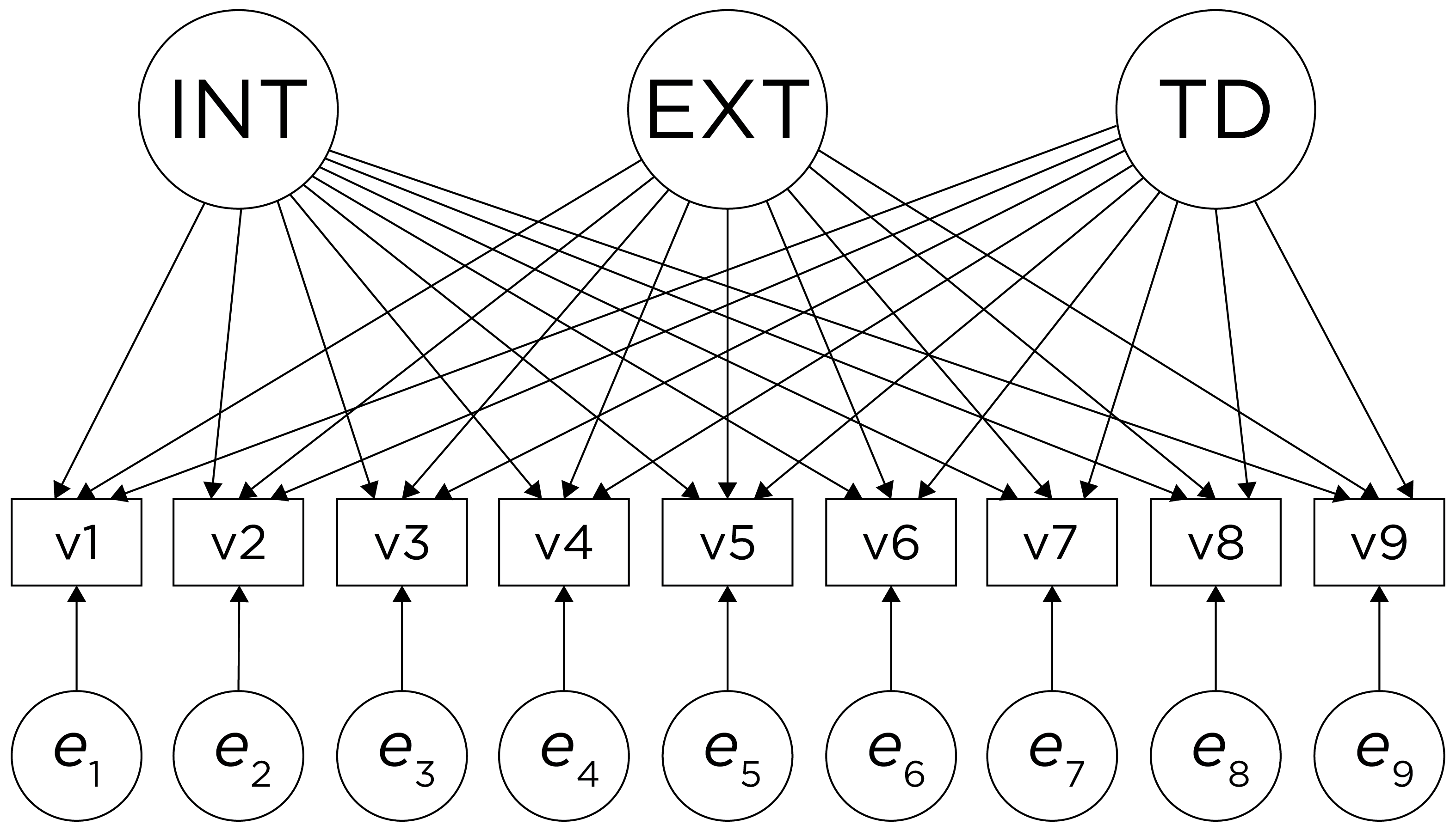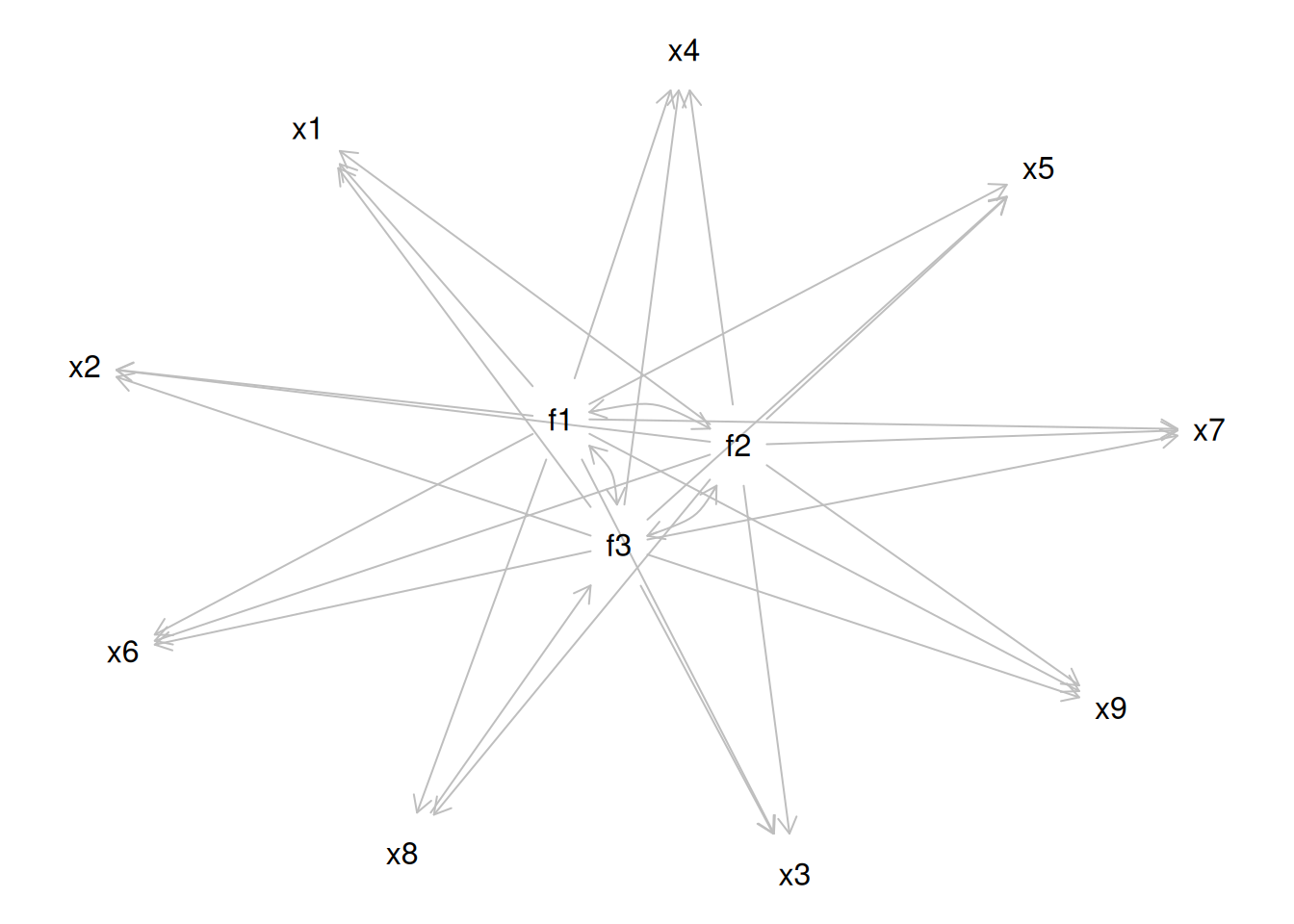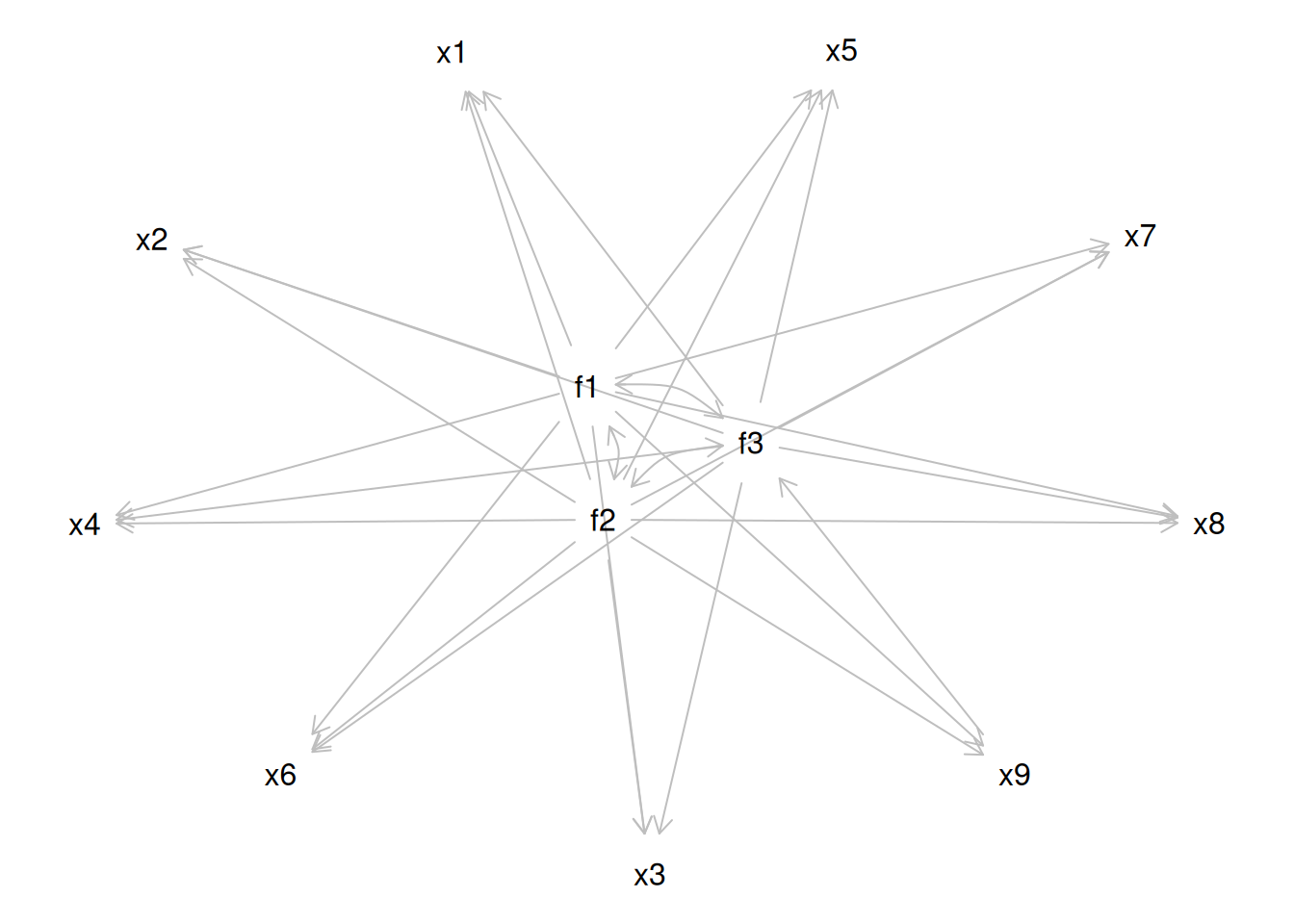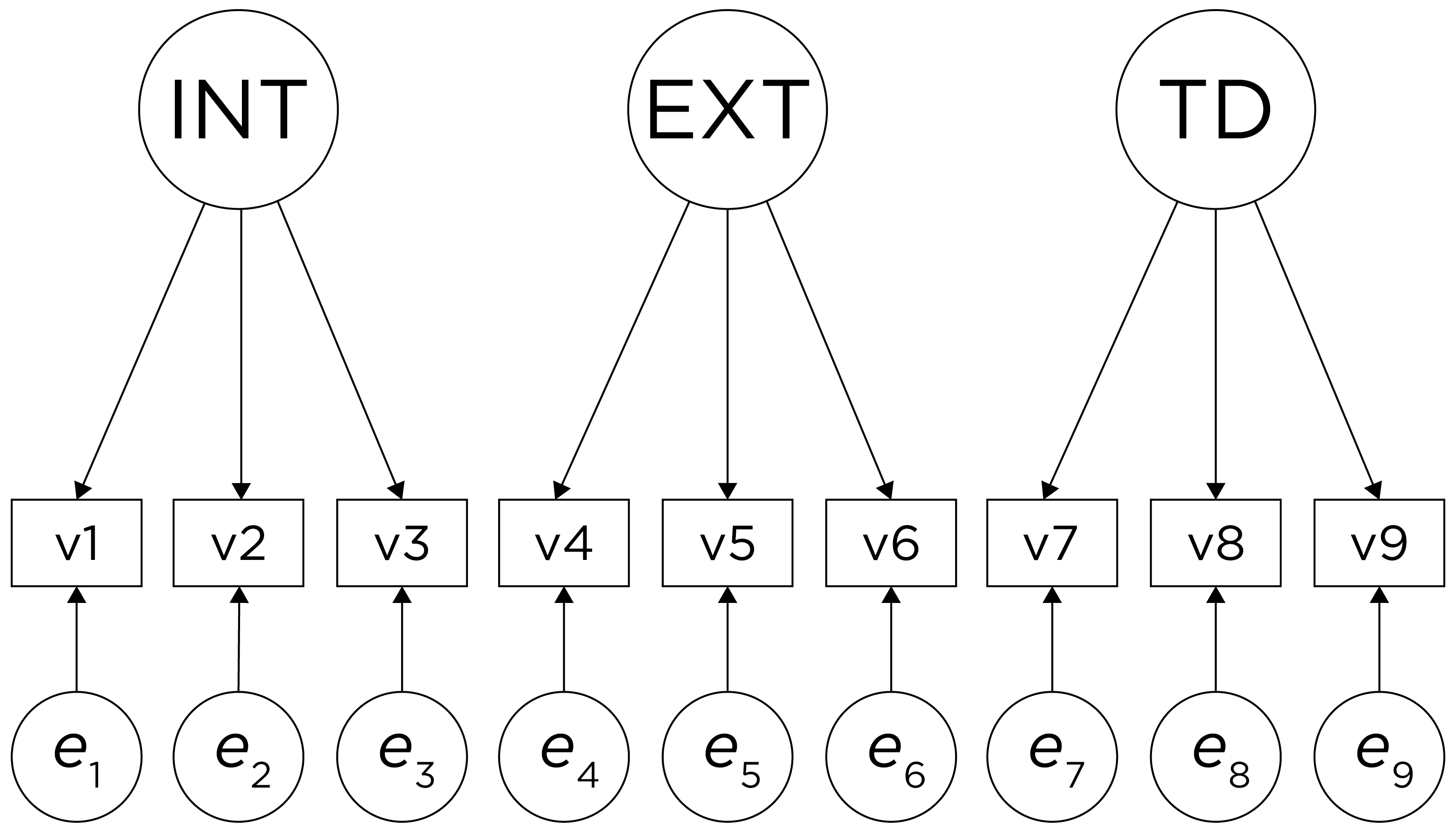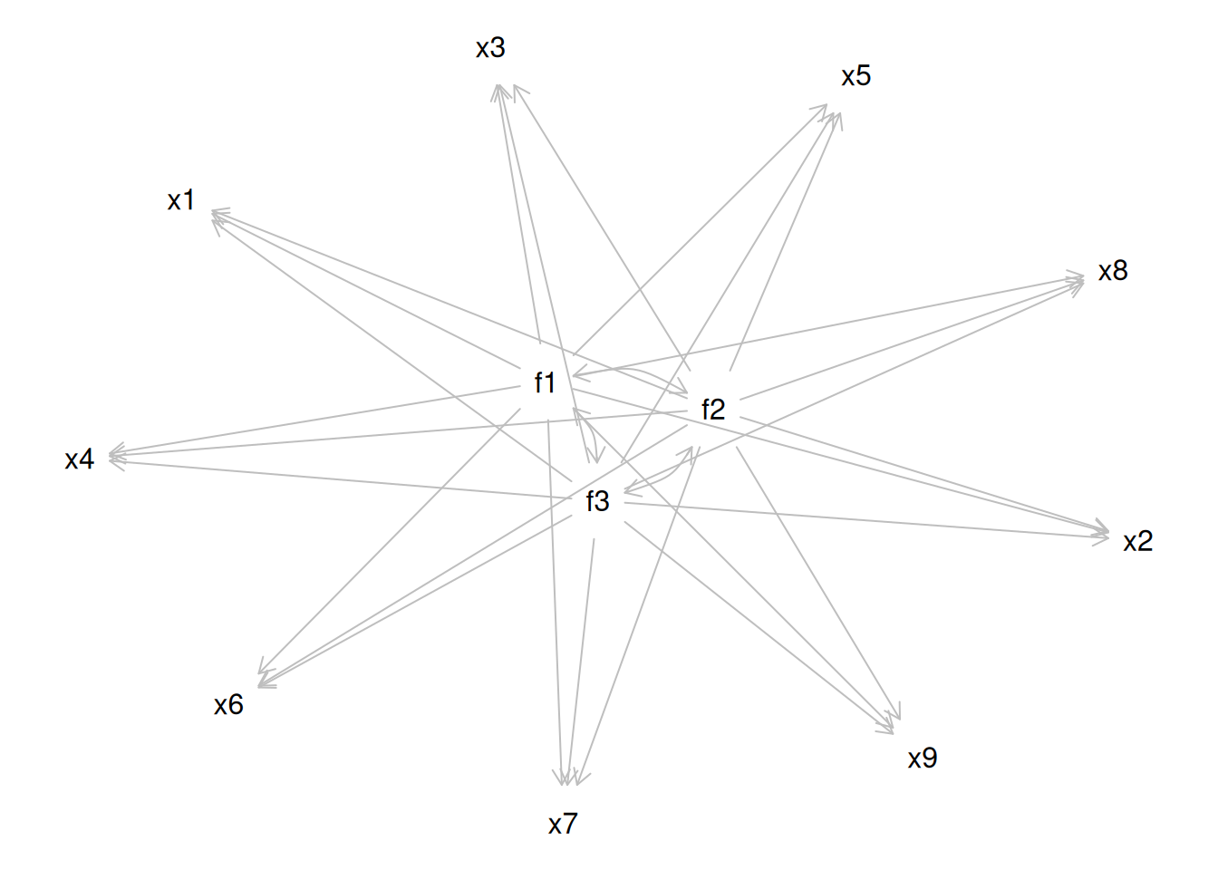 An example of a measurement model that follows simple structure is depicted in Figure 14.16. Each variable loads onto one and only one factor, which makes it easy to interpret the meaning of each factor, because a given factor represents the common variance among the items that load onto it.