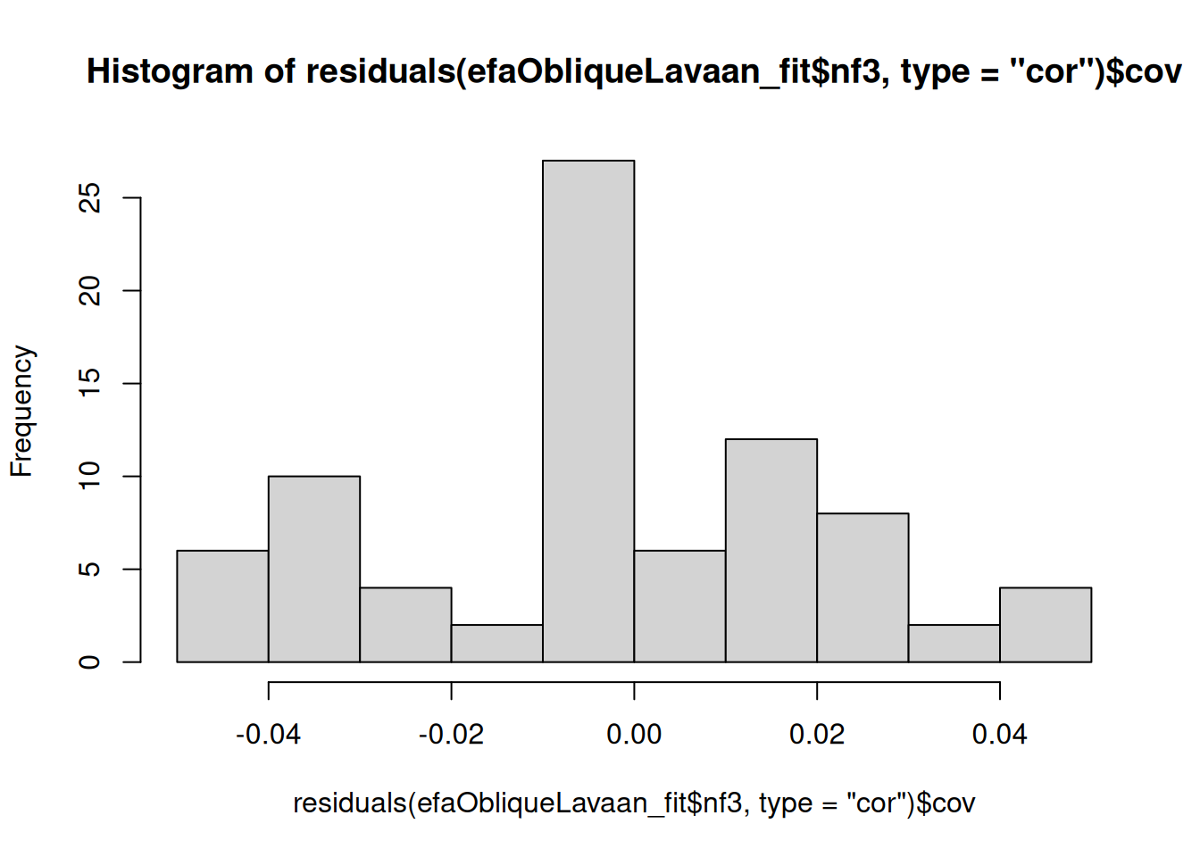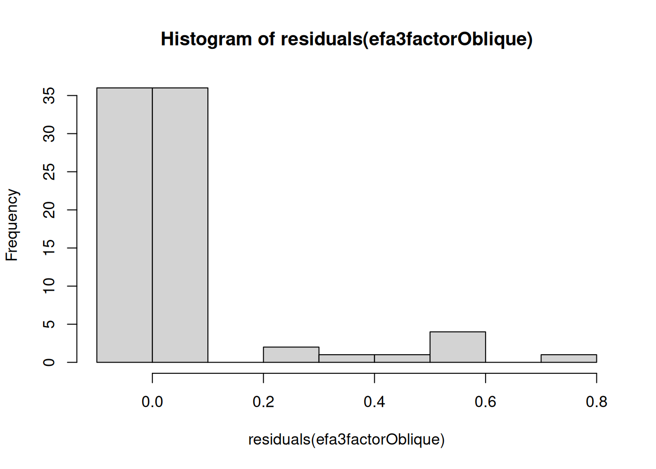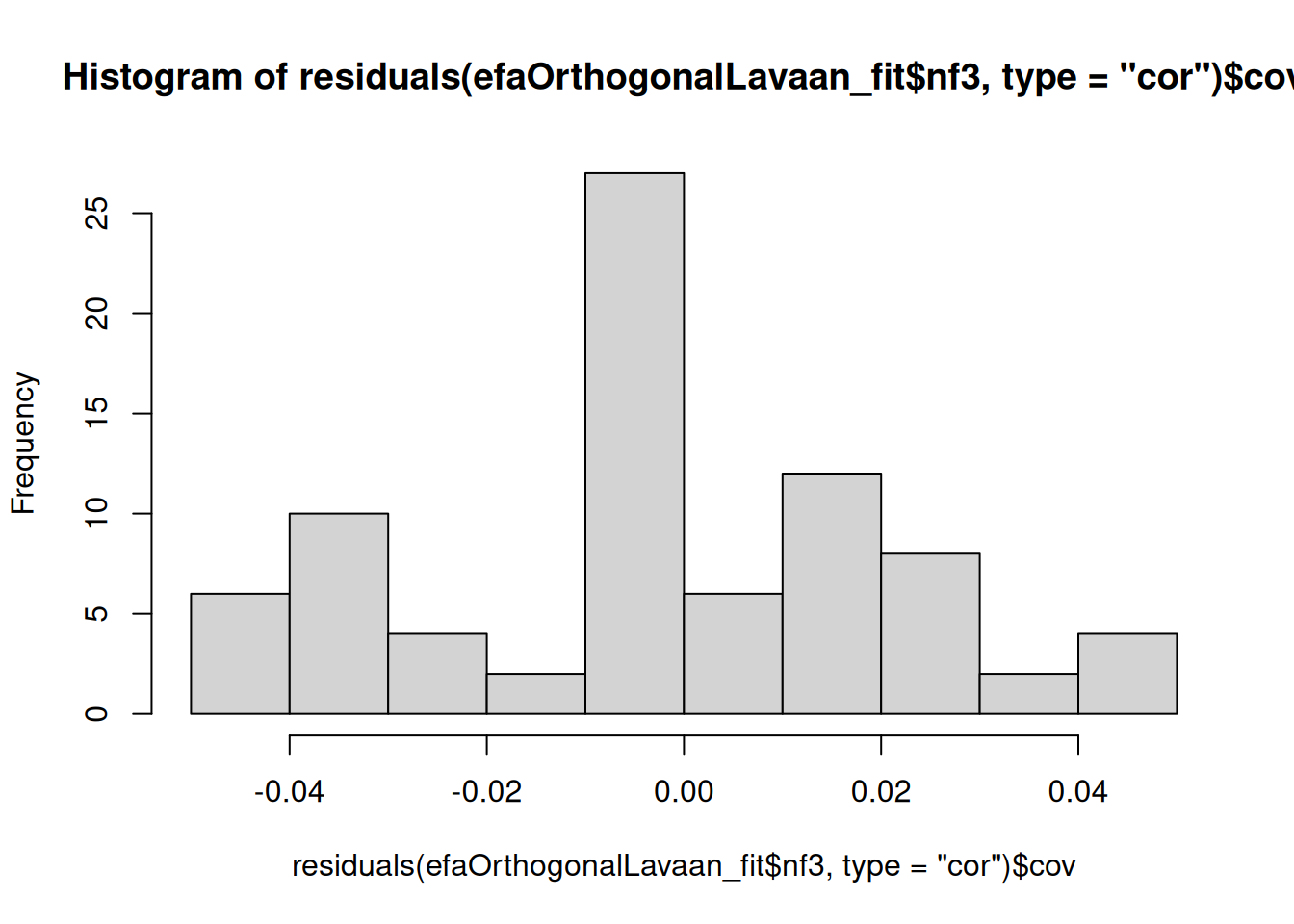 In general, my recommendation is to use Cattell’s scree test, and then test the factor solutions with plus or minus one factor. You should never accept PCA components with eigenvalues less than one (or factors with eigenvalues less than zero), because they are likely to be largely composed of error. If you are using maximum likelihood factor analysis, you can compare the fit of various models with model fit criteria to see which model fits best for its parsimony. A model will always fit better when you add additional parameters or factors, so you examine if there is significant improvement in model fit when adding the additional factor—that is, we keep adding complexity until additional complexity does not buy us much. Always try a factor solution that is one less and one more than suggested by Cattell’s scree test to buffer your final solution because the purpose of factor analysis is to explain things and to have interpretability. Even if all rules or indicators suggest to keep X number of factors, maybe \(\pm\) one factor helps clarify things. Even though factor analysis is empirical, theory and interpretatability should also inform decisions.
