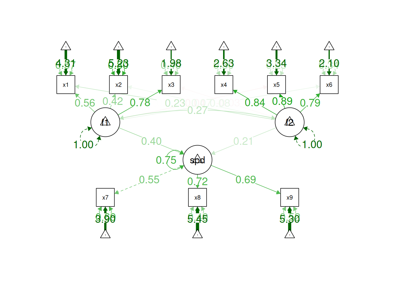 What can you do with factors once you have them? In SEM, factors have meaning. You can use them as predictors, mediators, moderators, or outcomes. And, using latent factors in SEM helps disattenuate associations for measurement error, as described in Section 5.6.3). People often want to use factors outside of SEM, but there is confusion here: When researchers find that three variables load onto Factor A, the researchers often combine those three using a sum or average—but this is not accurate. If you just add or average them, this ignores the factor loadings and the error. A mean or sum score is a measurement model that assumes that all items have the same factor loading (i.e., a loading of 1) and no error (residual of 0), which is unrealistic. Another solution is to form a linear composite by adding and weighting the variables by the factor loadings, which retains the differences in correlations (i.e., a weighted sum), but this still ignores the estimated error, so it still may not be generalizable and meaningful. At the same time, weighted sums may be less generalizable than unit-weighted composites where each variable is given equal weight (Garb & Wood, 2019; Wainer, 1976) because some variability in factor loadings likely reflects sampling error.