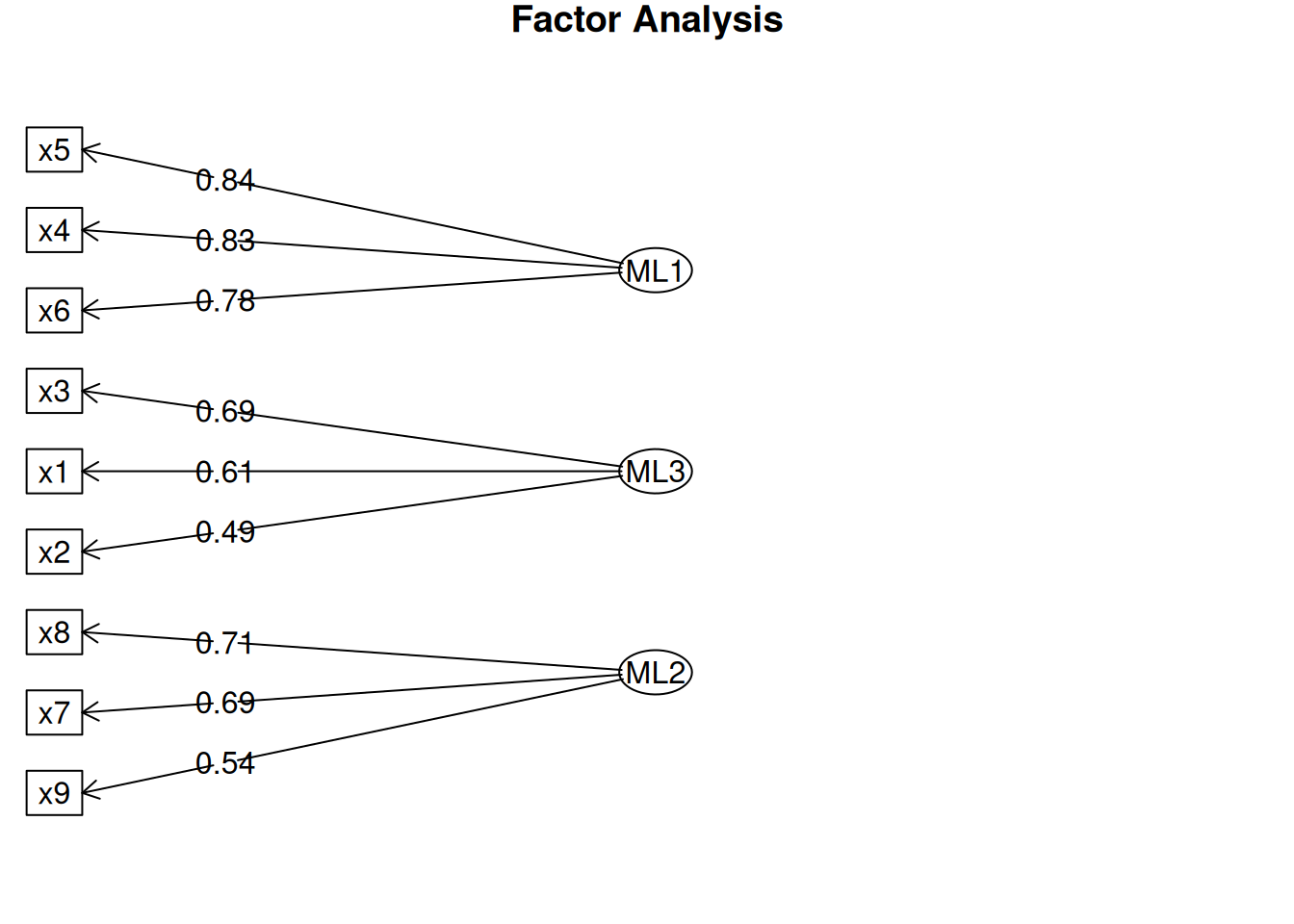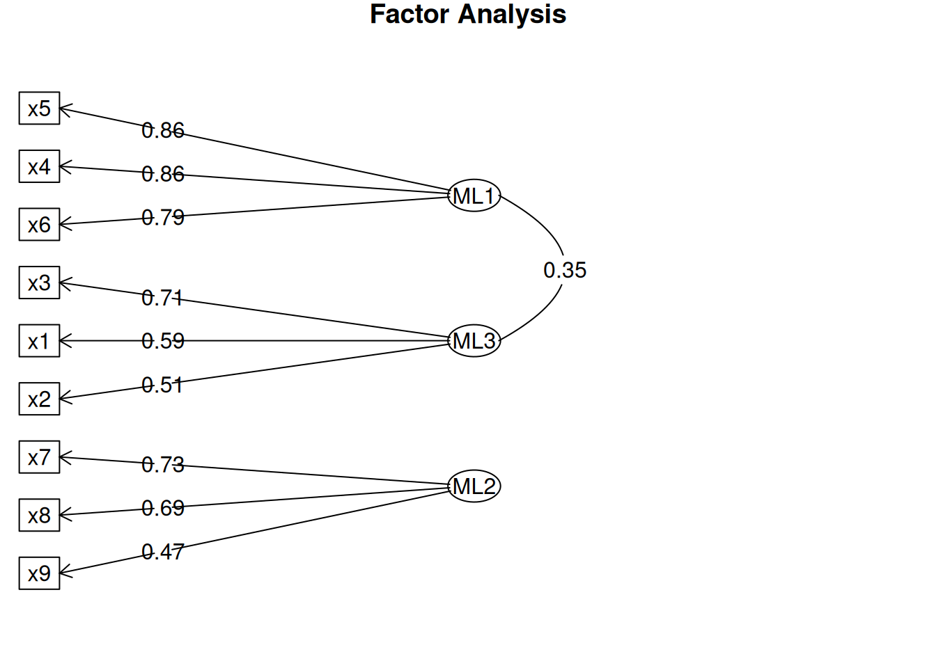 An example of a factor structure from an orthogonal rotation is in Figure 14.23.