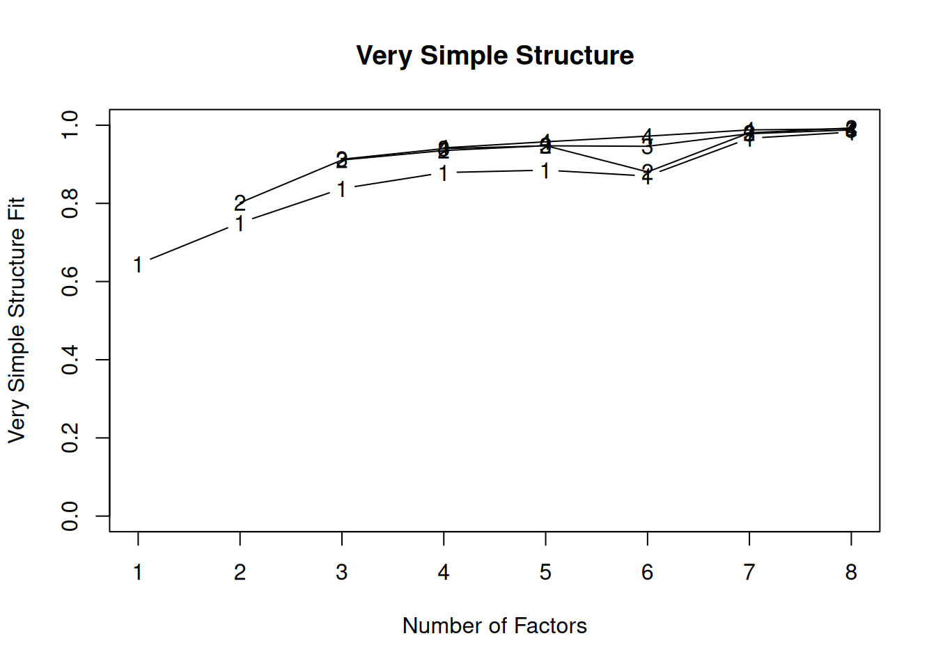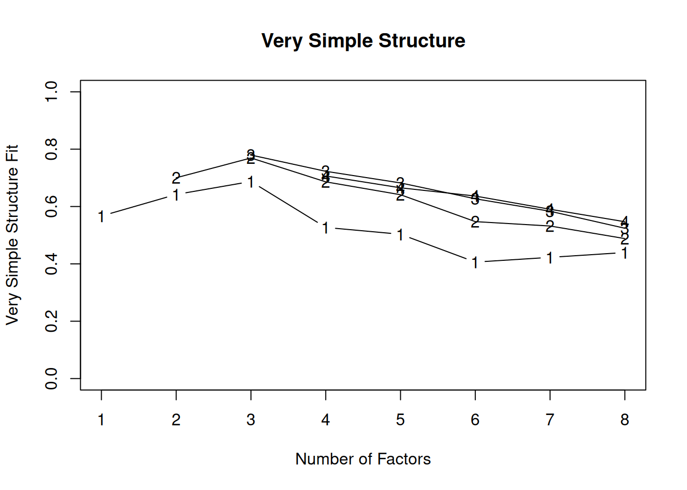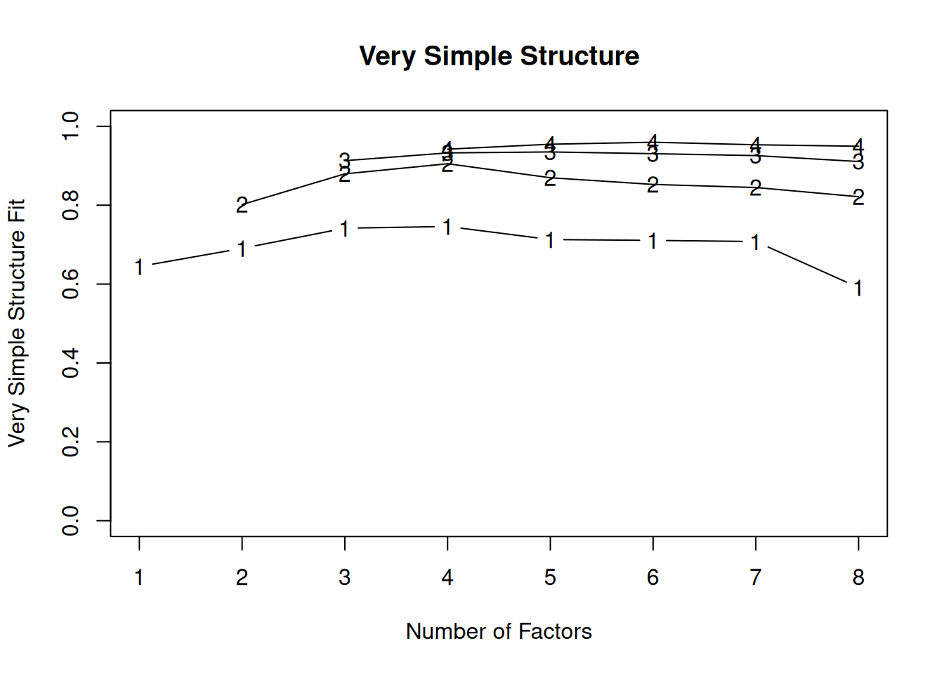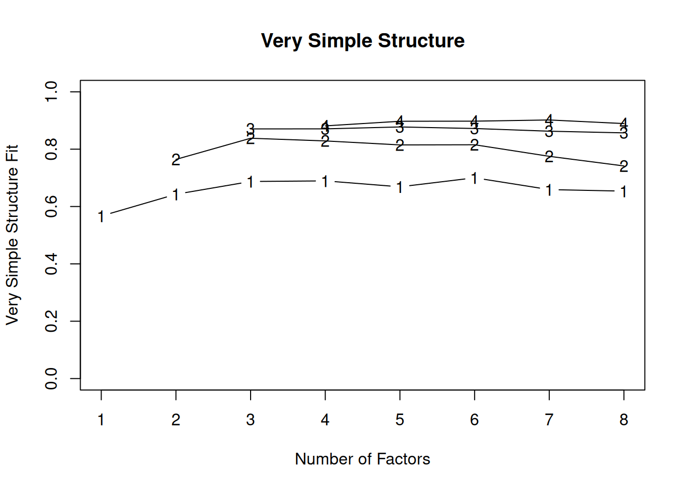 - Velicer’s minimum average partial (MAP) test: smaller is better
