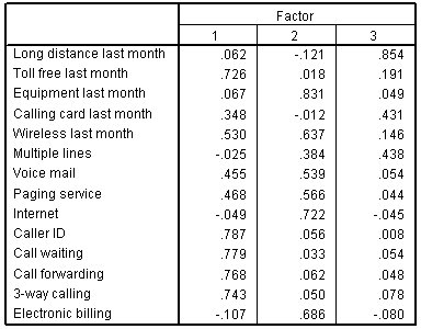 An example of a factor matrix from SPSS following an orthogonal rotation is depicted in Figure 14.22.
