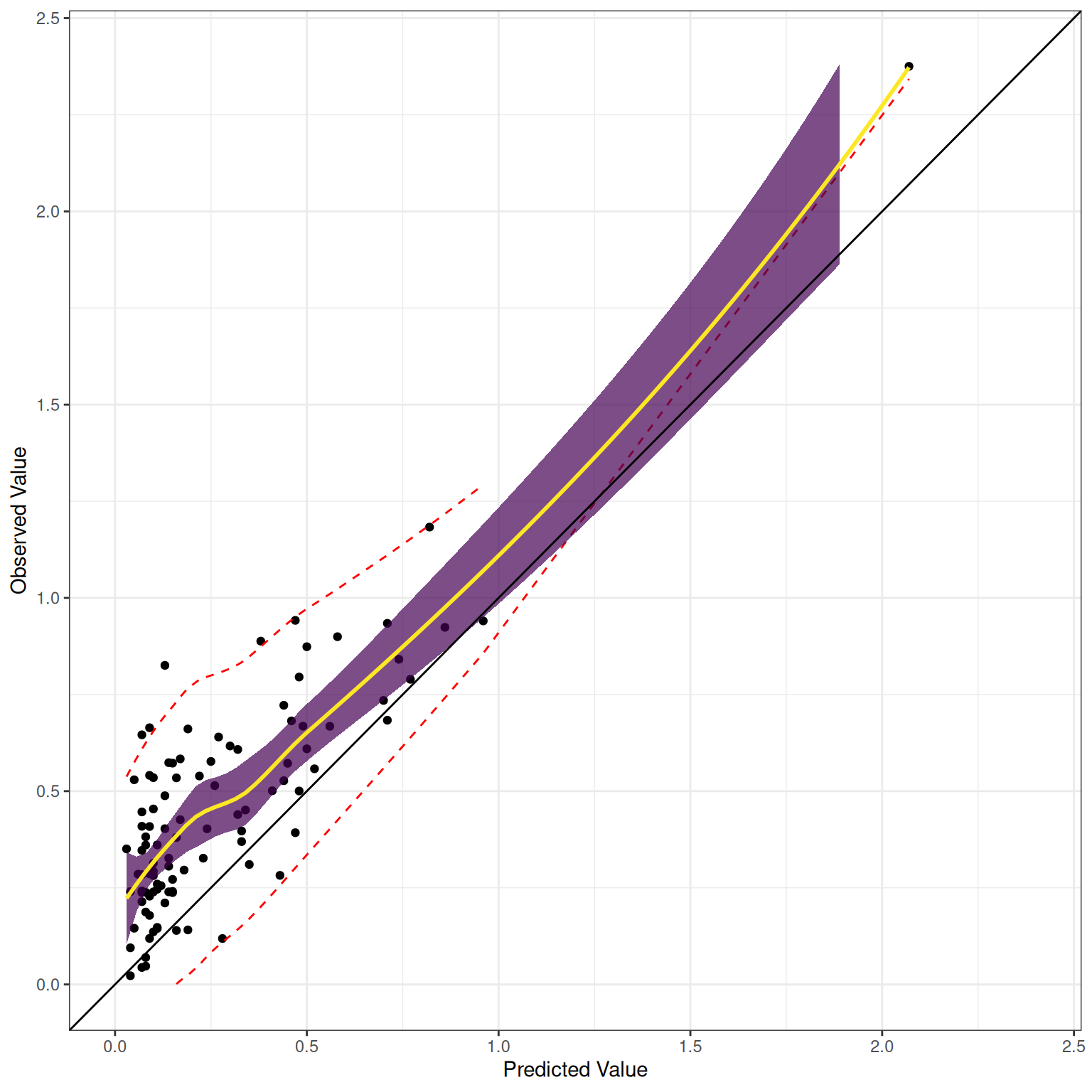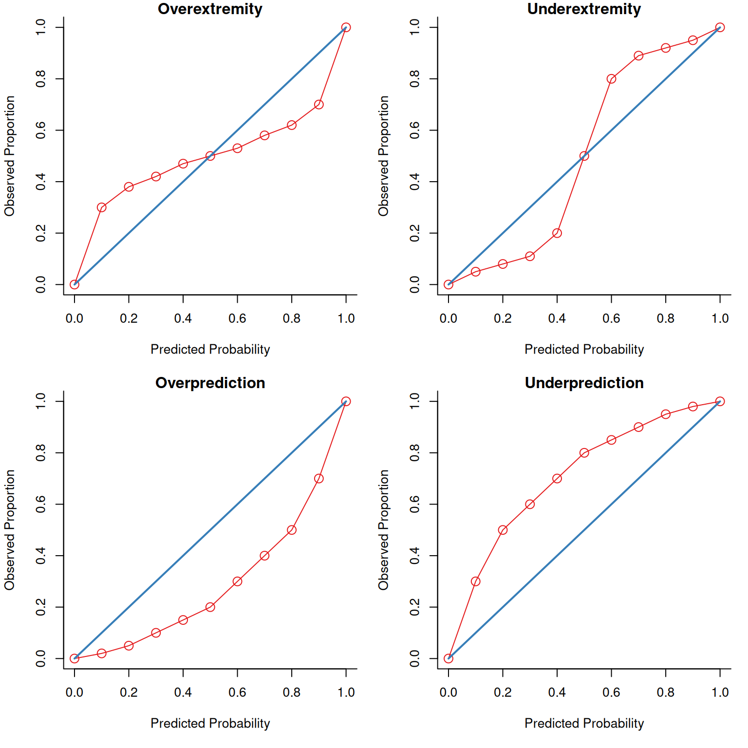 - Miscalibration (mean difference between predicted and observed values): \(0.017–0.085\)