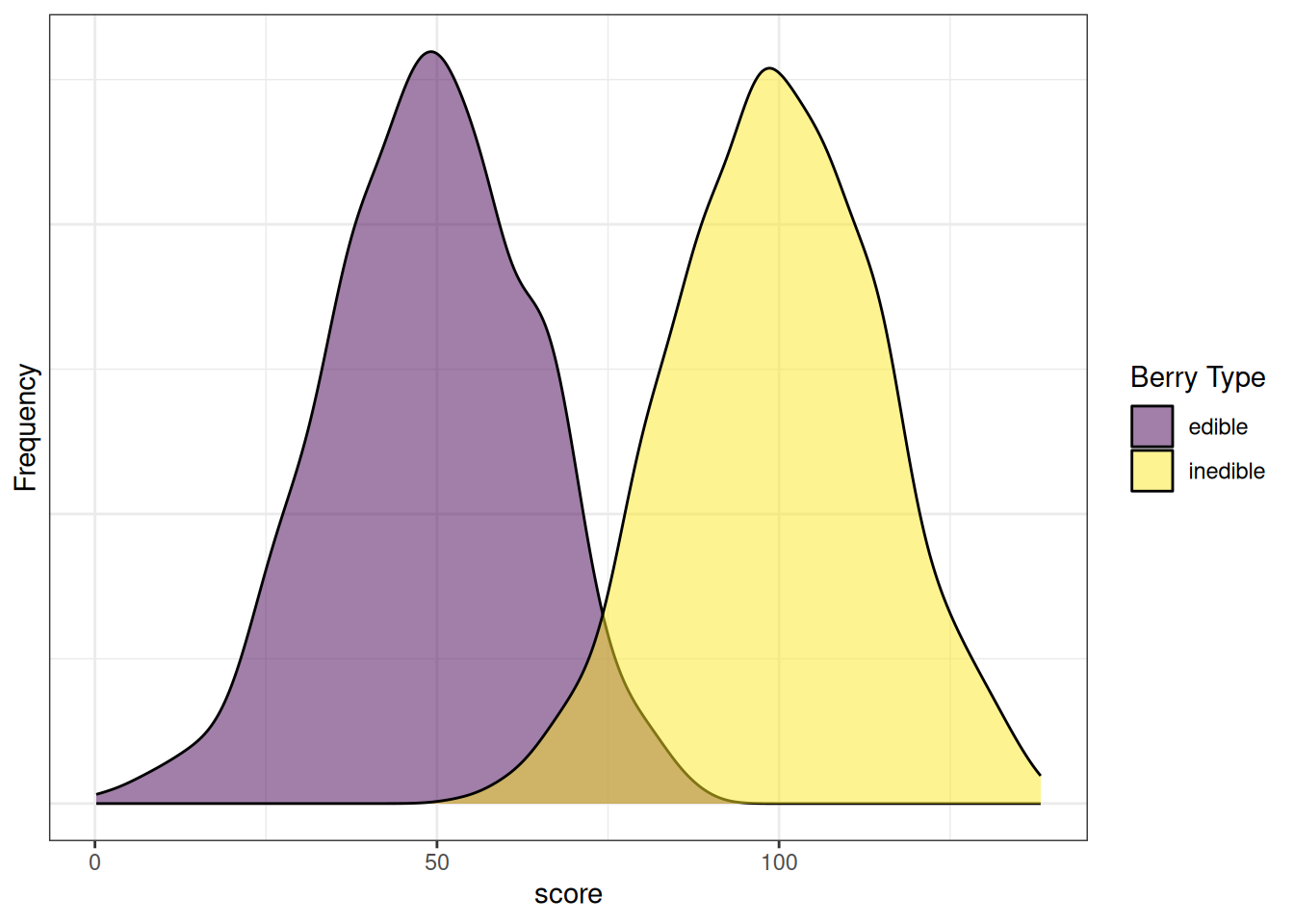 In Bayesian terms, the posterior probability is the conditional probability of one event occurring given another event—it is the updated probability after the evidence is considered. In this case, the posterior probability is the probability of the classification occurring (\(C\)) given the response (\(R\)). The likelihood is the inverse conditional probability—the probability of the response (\(R\)) occurring given the classification (\(C\)). The prior probability is the marginal probability of the event (i.e., the classification) occurring, before we take into account any new information. The model evidence is the marginal probability of the other event occurring—i.e., the marginal probability of seeing the evidence.