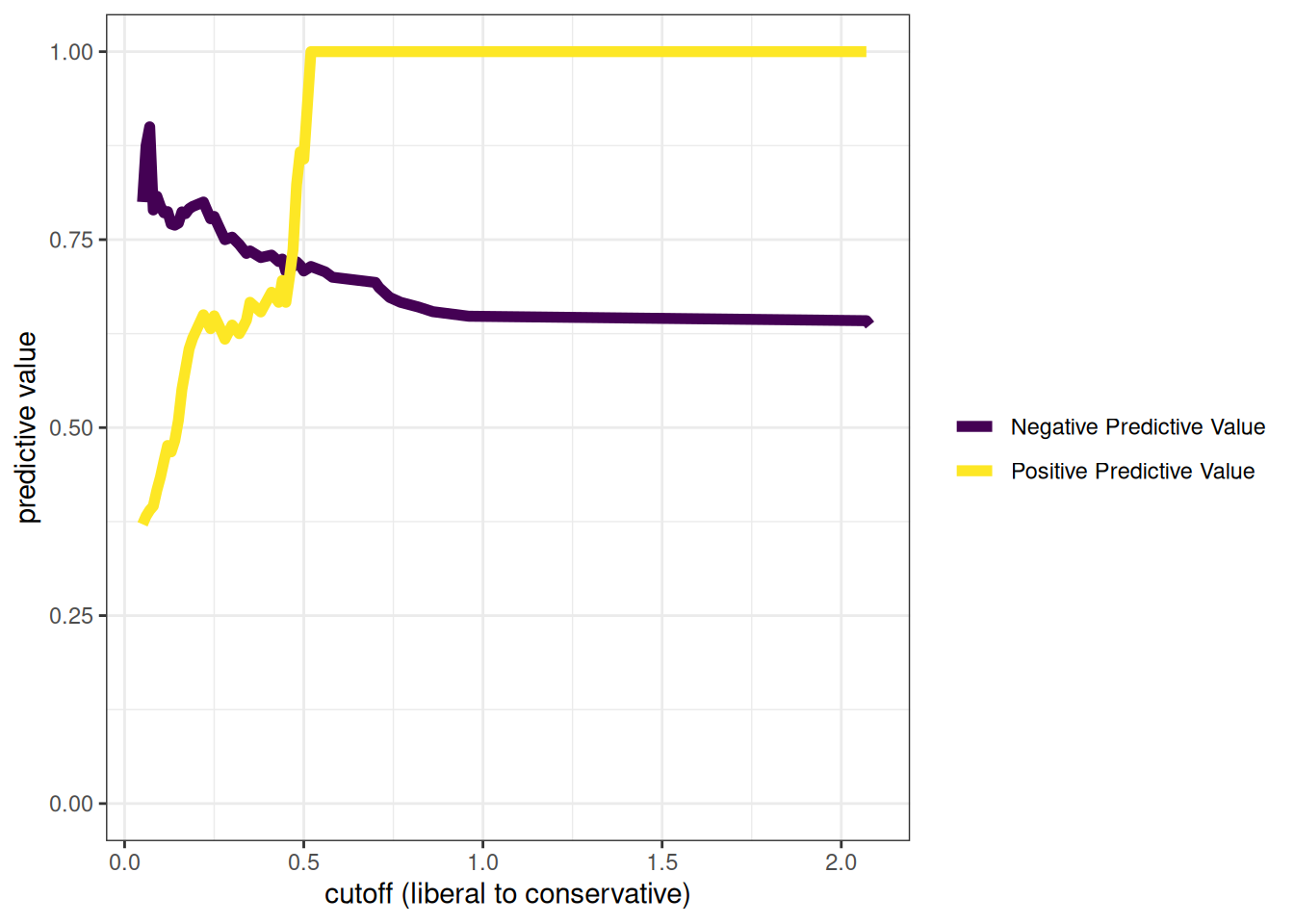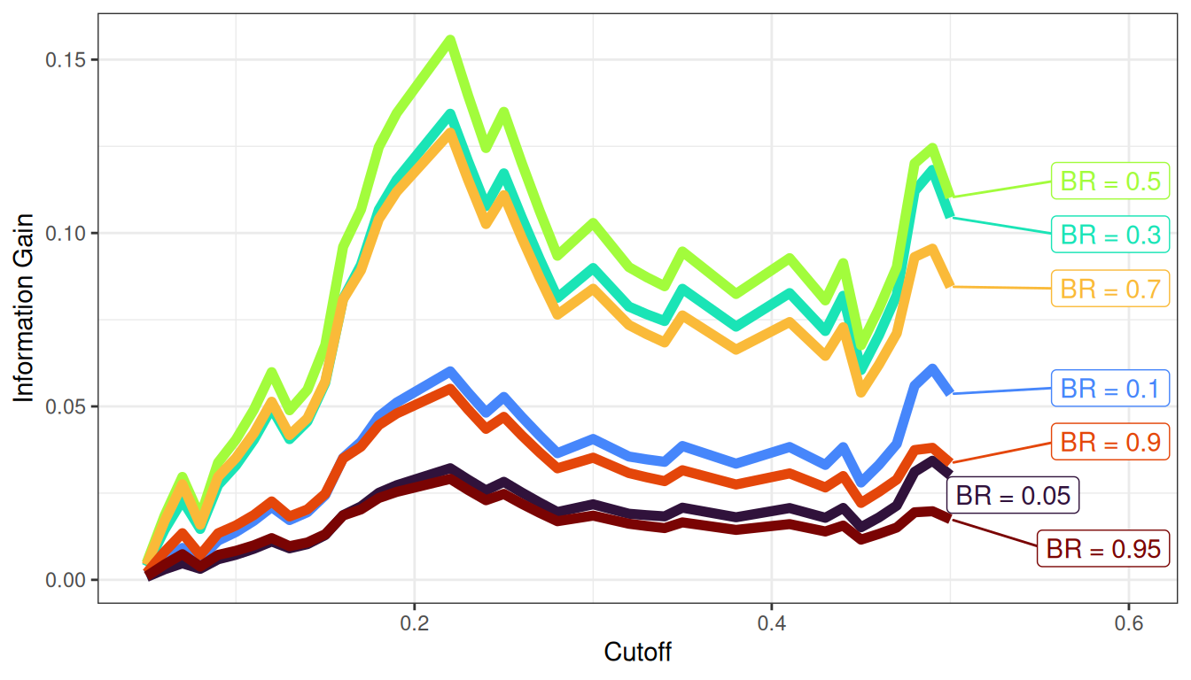 - Negative predictive value (NPV): \(0.017, 0.023, 0.027, 0.031, 0.032, 0.035, 0.035, 0.035, 0.038, 0.039\)